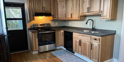 Hardwood floors (refinished by NEWBERG Flooring), cabinets with soft close drawers, gas range and ceiling fans, all new light fixtures and ceiling fans. Clawfoot tub with shower with new toe-touch drain. Coin Op Washer/Dryer in building. Storage for Bike, camping gear, canoe or kayak.